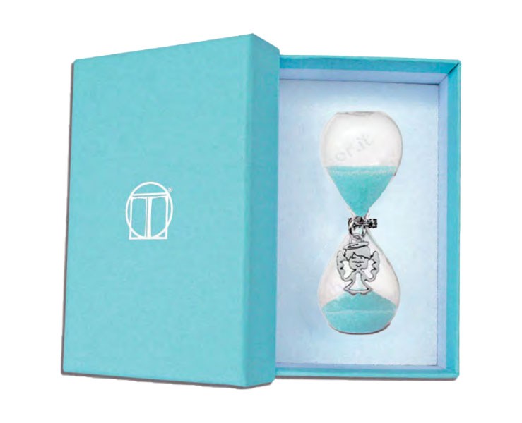 Bomboniera Battesimo Tabor clessidra celeste con ciondolo angelo