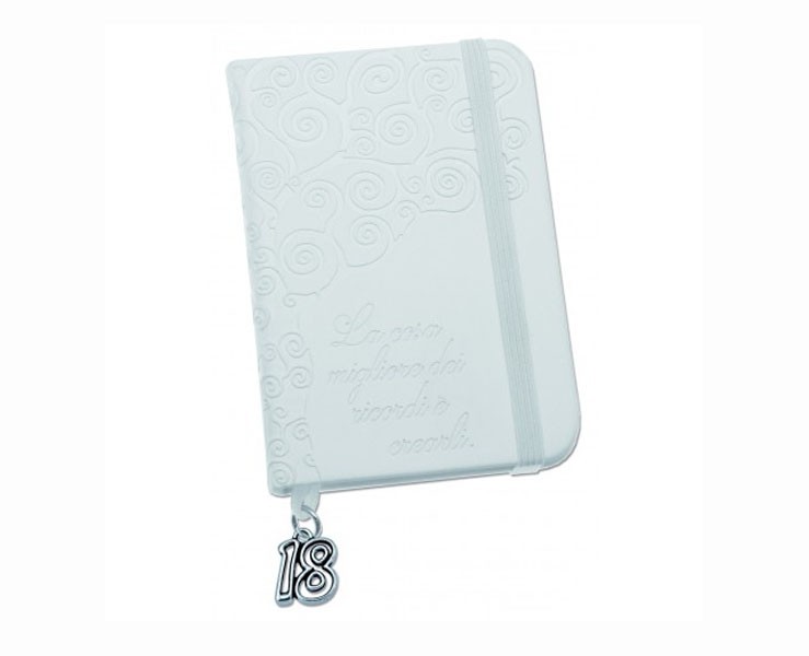 Bomboniera compleanno Tabor agendina blocco note appunti con ciondolo 18