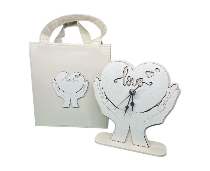 Bomboniera Matrimonio Mariella Martini Orologio Cuore su Mani con Scritta Love
