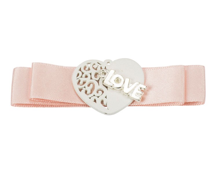 L'applicazione cuore "LOVE" di Baratti è un concentrato di tenerezza. La tonalità cipria del raso, unita al bianco del cuore e all'argento del charm, crea una palette cromatica armoniosa che si adatta a moltissimi stili, dal classico al bohémien. È un dettaglio che parla d'amore in modo discreto e prezioso, capace di elevare istantaneamente il valore estetico di un semplice porta confetti.