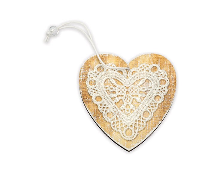 Questo elemento decorativo della linea Baratti fonde sapientemente la matericità del legno naturale con la finezza del pizzo, creando un contrasto armonioso ideale per cerimonie eleganti e dallo stile "shabby chic". Il cuore, simbolo universale d'amore, viene qui reinterpretato come un piccolo oggetto d'arte artigianale.