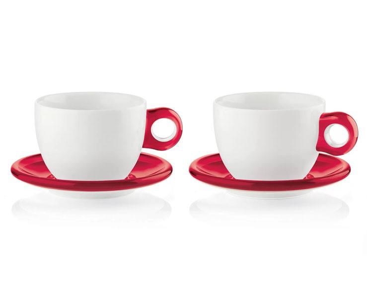 SET 2 TAZZE DA CAPPUCCINO GOCCIE ROSSO