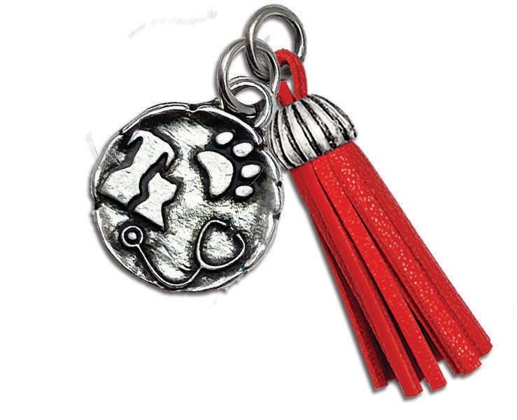 Bomboniera Laurea ciondolo veterinaria con nappa rossa
