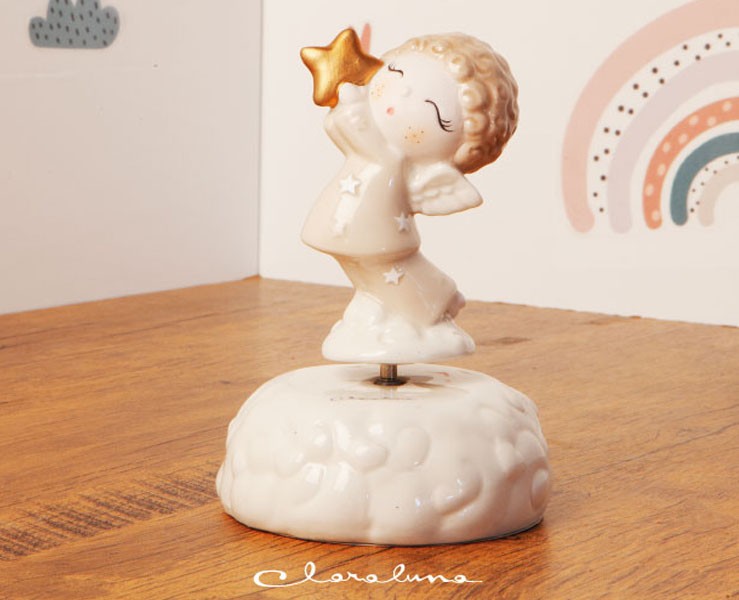 Bomboniera Claraluna Nascita Battesimo compleanno carillon angelo maschio con stella