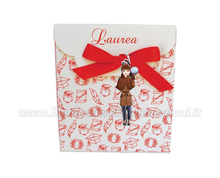 Celebra la laurea con questa raffinata bomboniera pensata per rendere unico il tuo evento speciale. Questo ciondolo esprime analisi, dedizione e il desiderio di contribuire alla sicurezza e alla giustizia, rendendolo il regalo ideale per celebrare il successo di chi si avventura nel mondo dell’investigazione e della criminologia.Realizzato in bagno argento smaltato di alta qualità, è un omaggio ideale per celebrare il successo accademico con stile. La bomboniera include una scatola in carta pregiata con decorazioni a tema laurea e un elegante fiocco rosso che dona un tocco di classe e armonia al packaging.