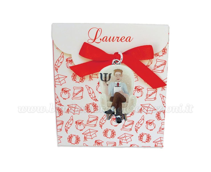 Bomboniera Laurea psicologia uomo - Ciondolo in bagno argento Smaltato con Scatola