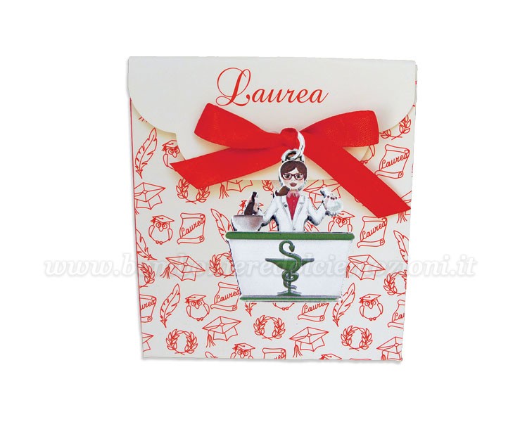 Bomboniera Laurea Farmacia donna - Ciondolo in bagno argento Smaltato con Scatola