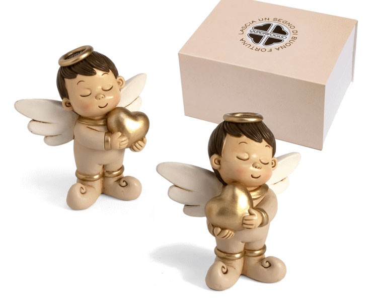 Bomboniera Solidale Prima comunione Battesimo dorata angelo medio
