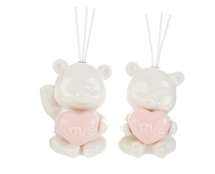 Bomboniera battesimo Profumatore Orsetto con Cuore in Porcellana rosa con astuccio