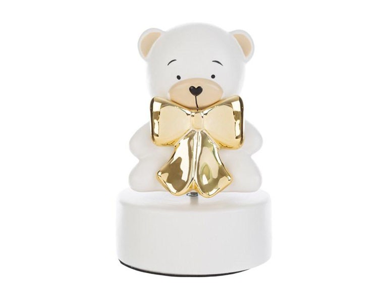 - Design: Orsetto con base musicale e fiocco dorato