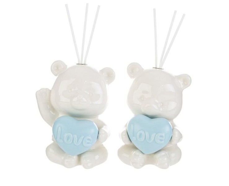 Bomboniera battesimo Profumatore Orsetto con Cuore in Porcellana Celeste con Astuccio