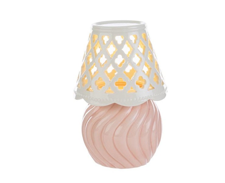 La lampada in porcellana rosa e bianca con design sofisticato e dettagli traforati è la scelta ideale per aggiungere un tocco di eleganza a qualsiasi ambiente. Perfetta come bomboniera per matrimoni e anniversari o come complemento d'arredo unico per la casa. La luce soffusa emessa dai dettagli traforati crea un'atmosfera calda e accogliente, rendendola un regalo memorabile.