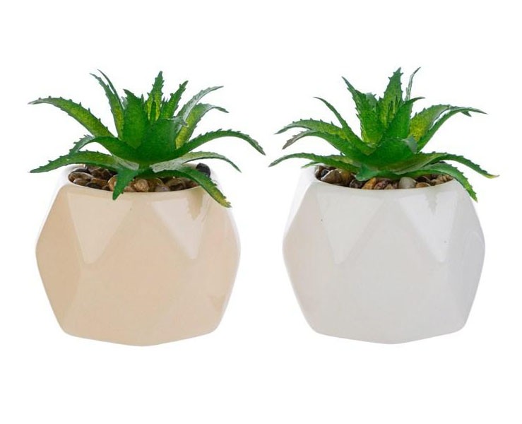 Bomboniera Vasetto con Piantina Artificiale in Porcellana - 2 Colori Assortiti