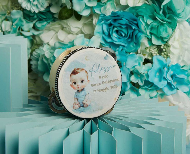 Bomboniera ClaralunaTamburello Decorativo Maschio Personalizzabile Bimbo