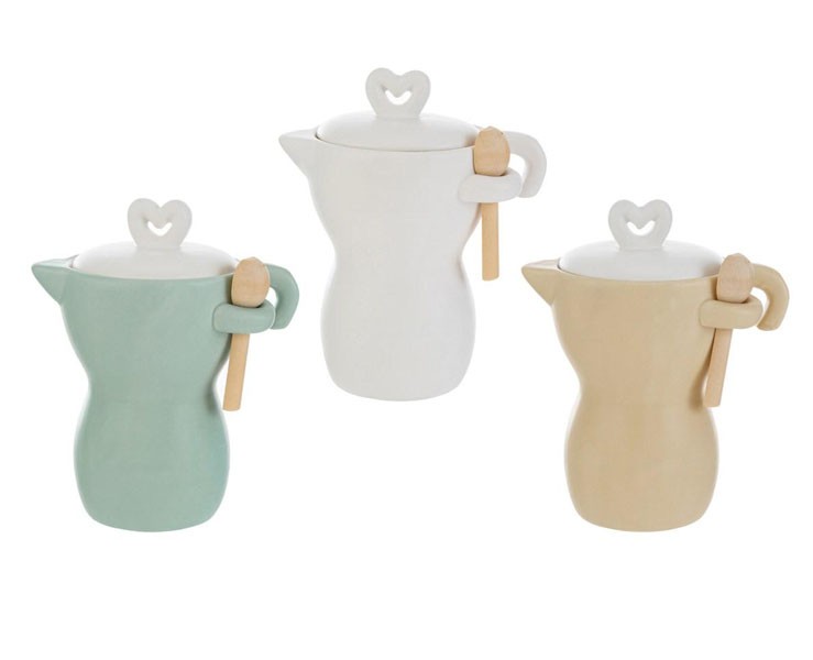 Scopri la moka in porcellana, un accessorio unico ed elegante disponibile in tre colori assortiti: bianco, verde pastello e beige. Perfetta come bomboniera per matrimoni, anniversari e occasioni speciali, questa moka è impreziosita da un design raffinato e un coperchio decorato con un cuore. L'aggiunta del cucchiaino in legno completa l'estetica raffinata, rendendola un'idea regalo versatile e apprezzata.