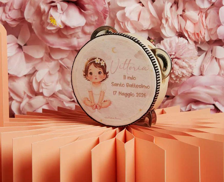 Bomboniera Claraluna Tamburello Decorativo Femmina Personalizzabile Bimba