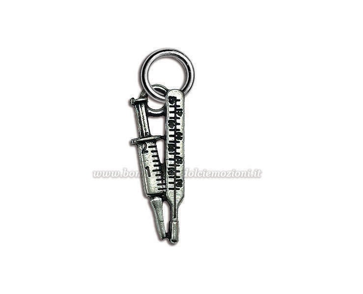 Bomboniera Laurea Ciondolo siringa termometro in Metallo Argentato - Bomboniera Made in Italy