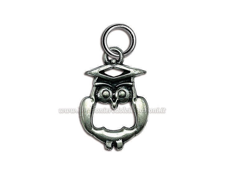 Bomboniera Laurea Ciondolo gufo in Metallo Argentato - Bomboniera Made in Italy