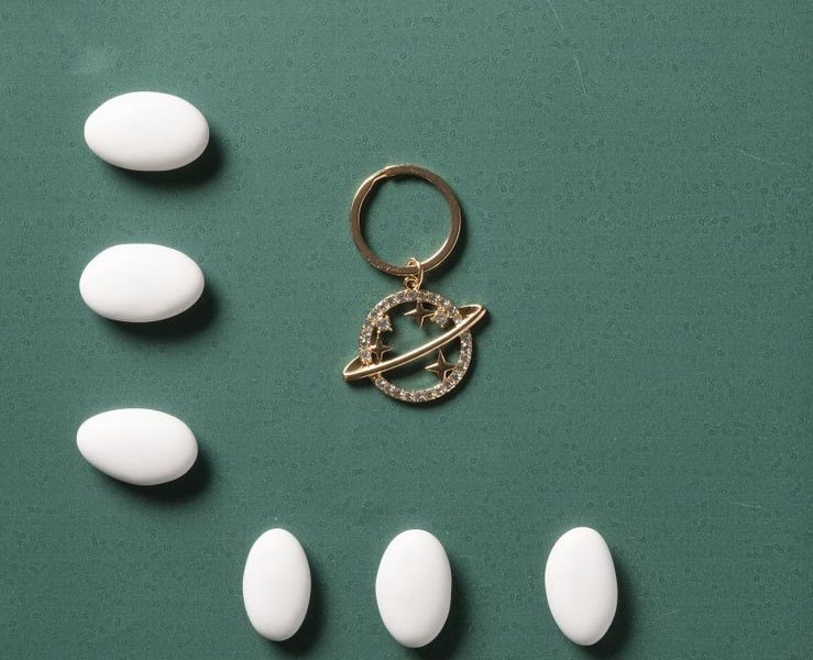 Abbinabile a un Sacchettino Portaconfetti: Per un tocco ancora più personale, potete abbinare il vostro portachiave Claraluna a un sacchettino portaconfetti. Una deliziosa sorpresa per i vostri ospiti.