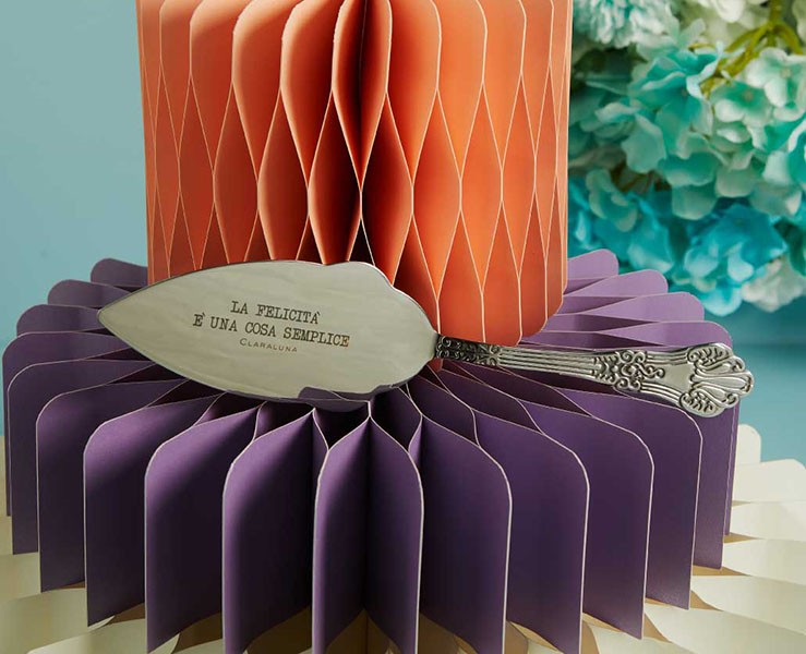 Bomboniera Matrimonio Claraluna 2026 Paletta per Torta Claraluna in Acciaio Decorato