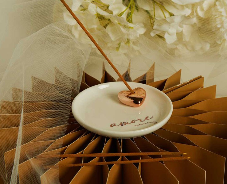 Bomboniera Matrimonio Claraluna 2026 Piattino Porta Incenso Amore con 3 Bastoncini