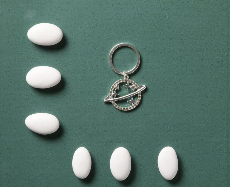 Abbinabile a un Sacchettino Portaconfetti: Per un tocco ancora più personale, potete abbinare il vostro portachiave Claraluna a un sacchettino portaconfetti. Una deliziosa sorpresa per i vostri ospiti.