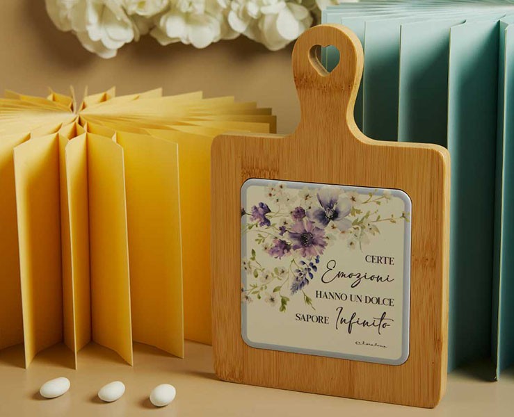 Bomboniera Claraluna 2026 Tagliere Bamboo Decoro Floreale Lilla