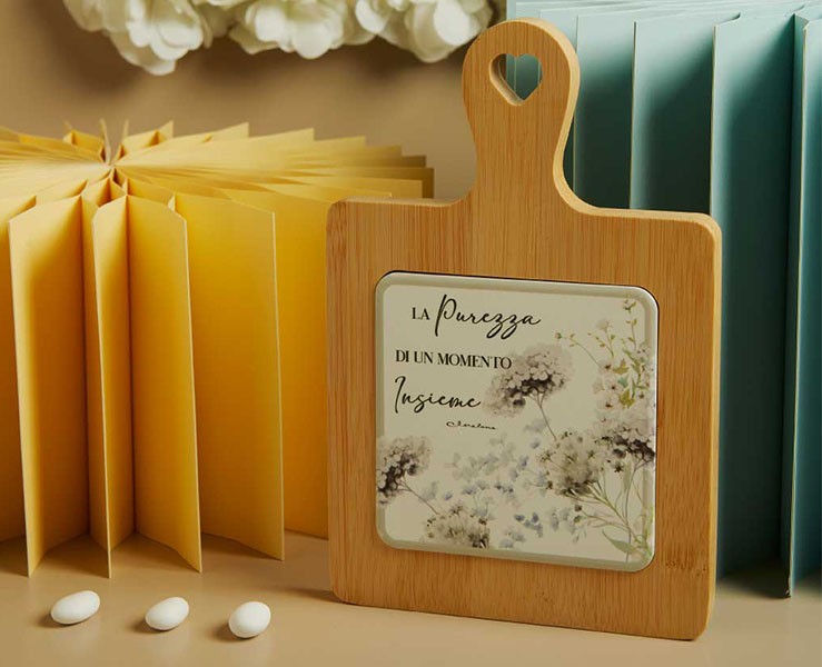 Bomboniera Claraluna 2026 Tagliere Bamboo Decoro Floreale Verde