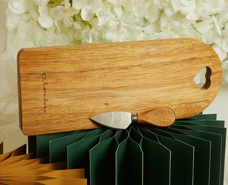 Bomboniera Claraluna 2026 Tagliere Acacia Grande con Coltello