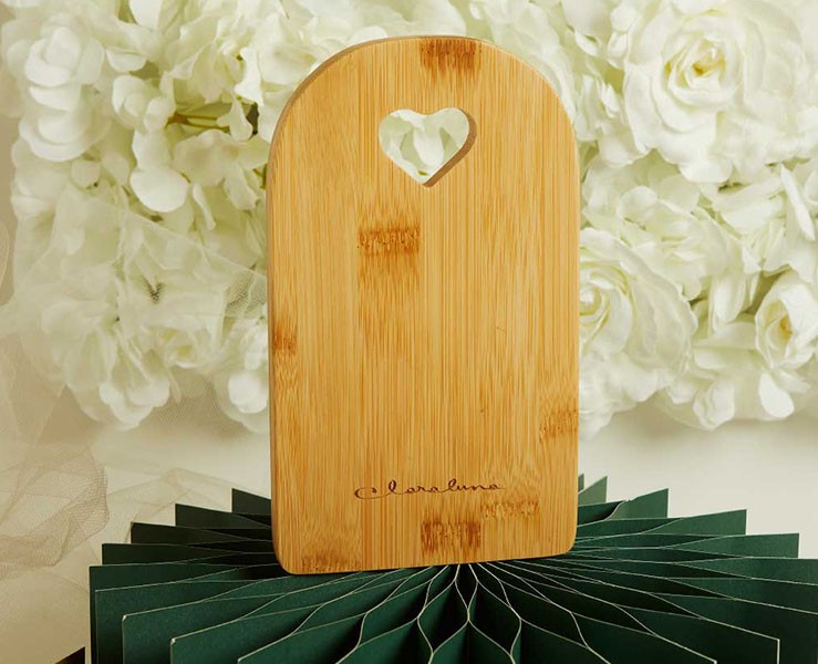 Bomboniera Claraluna 2026 – Tagliere Bamboo Piccolo 20,5x12x1,2 cm 🤠– Tagliere in bamboo con cuore traforato, elegante, naturale e perfetto per ogni occasione