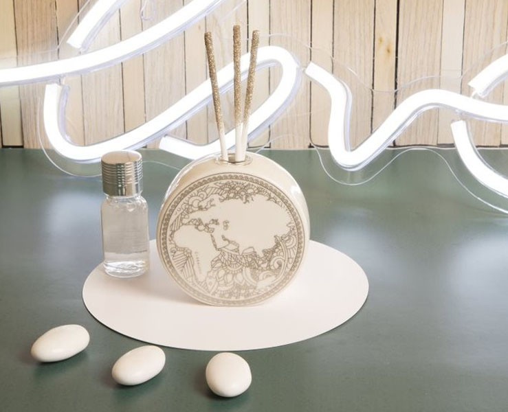 Bomboniera Matrimonio Claraluna diffusore tondo con mondo