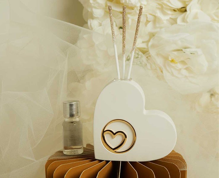 Bomboniera Matrimonio Claraluna 2026 Diffusore Claraluna Cuore Bianco con Applicazione Oro