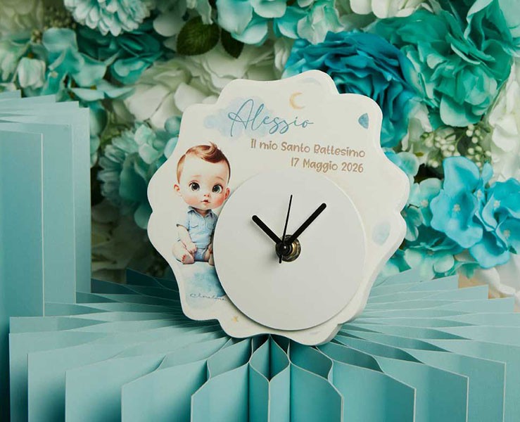 Bomboniera Claraluna 2026 Orologio Battesimo Maschietto Personalizzabile con Nome e Data