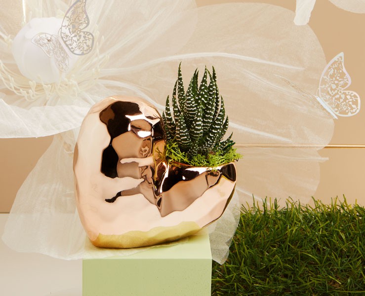 La collezione Claraluna 2025 propone una bomboniera raffinata e moderna: il vaso a cuore con piantina in porcellana color oro rosa, dalle dimensioni di 14 x 12 x 6 cm. Questo splendido vaso, dal design contemporaneo e dal colore brillante, è perfetto per matrimoni e altre occasioni speciali come comunioni, battesimi, compleanni e anniversari, aggiungendo un tocco di naturale eleganza.