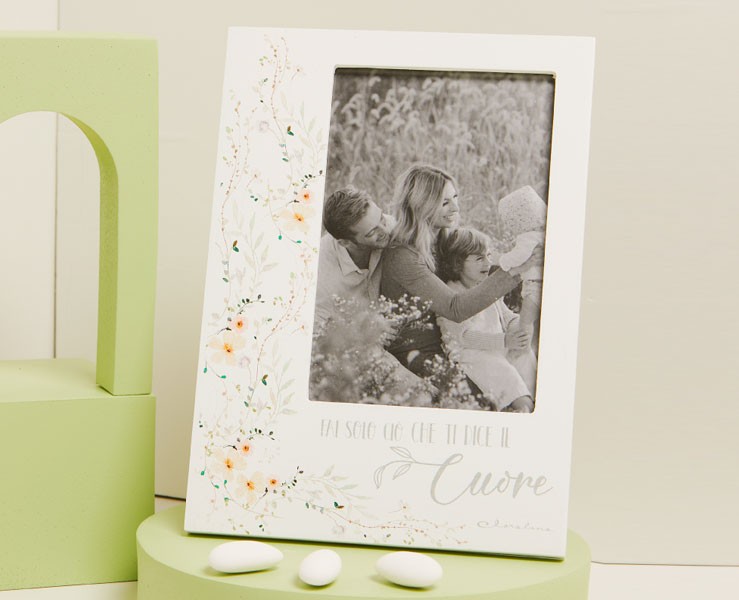 BOMBONIERA MATRIMONIO CLARALUNA PORTAFOTO DECORO FLOREALE VERDE