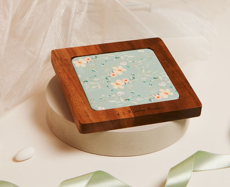 La collezione Claraluna 2025 presenta un'elegante bomboniera: il sottopentola in legno e porcellana con decoro floreale Verde, dalle dimensioni di 15 x 15 x 1,5 cm. Questo sottopentola raffinato è perfetto per aggiungere un tocco di stile alla cucina e agli eventi speciali, rendendolo ideale per matrimoni, comunioni, battesimi, compleanni e anniversari.
