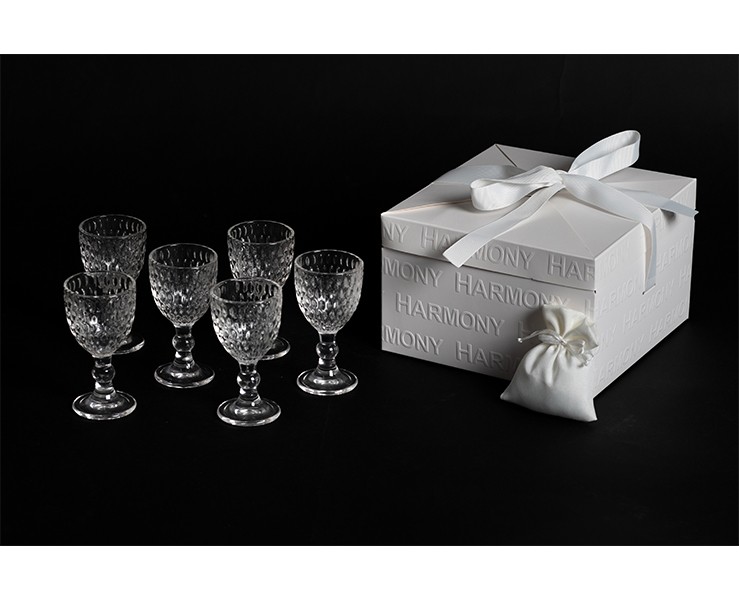 Bomboniera Matrimonio harmony SET DA 6 PZ BICCHIERINI DA LIQUORE DECORO DOTS