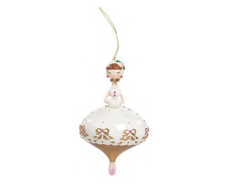 Aggiungi un tocco di eleganza al tuo albero di Natale con questa decorazione natalizia appendibile a forma di ragazza stilizzata. Alta 18 cm e con un diametro di 10,6 cm, questa decorazione è realizzata in resina di alta qualità e dipinta a mano per offrire un design unico e sofisticato. Il suo vestito decorato con dettagli dorati e il look raffinato la rendono un'aggiunta perfetta alle tue decorazioni festive.