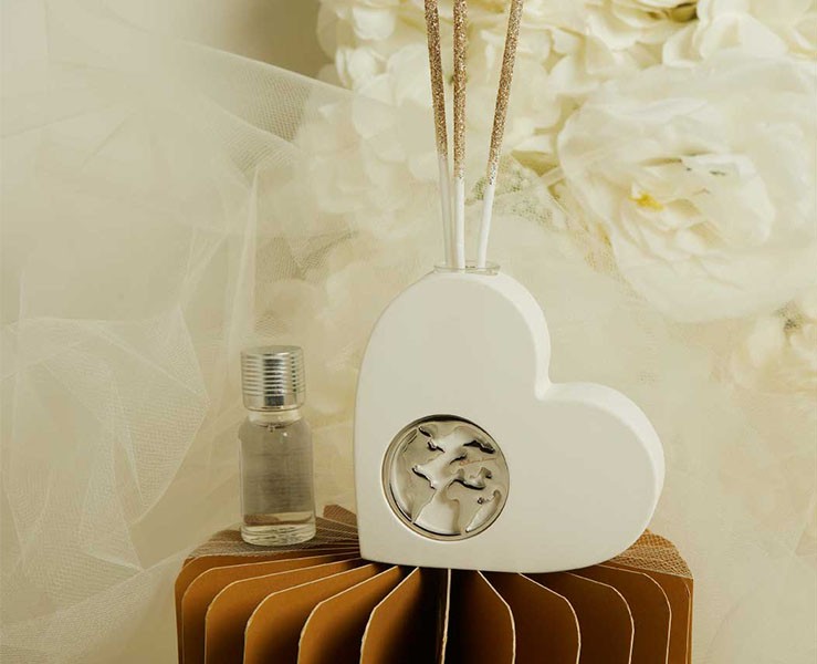 Bomboniera Matrimonio Claraluna 2026Diffusore Claraluna Cuore Bianco con Mondo silver