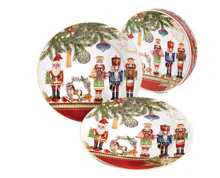 Set di 2 Piatti Natalizi in Porcellana con Soldati Schiaccianoci Con Gift Box