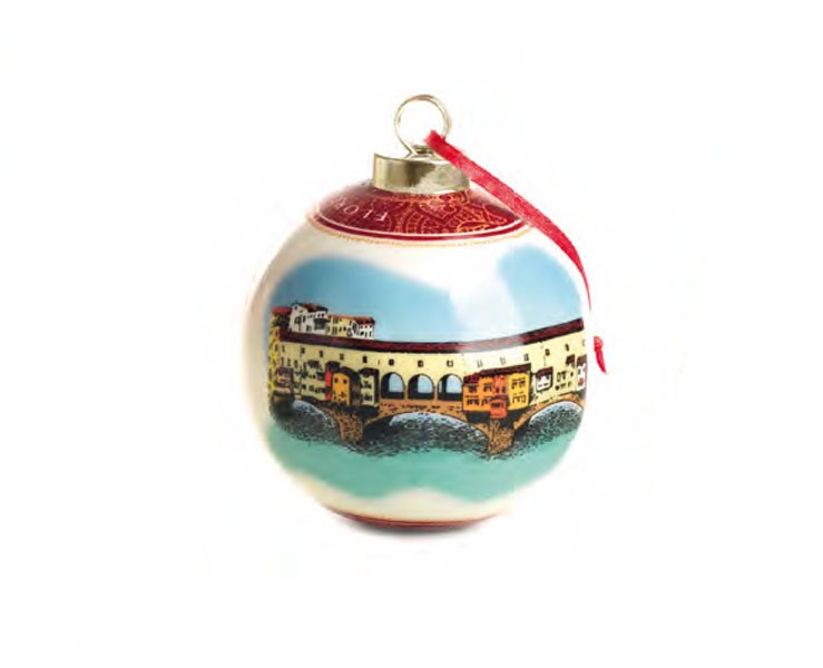 Pallina Sfera Natalizia Ponte Vecchio diametro 8 cm, H 10 cm