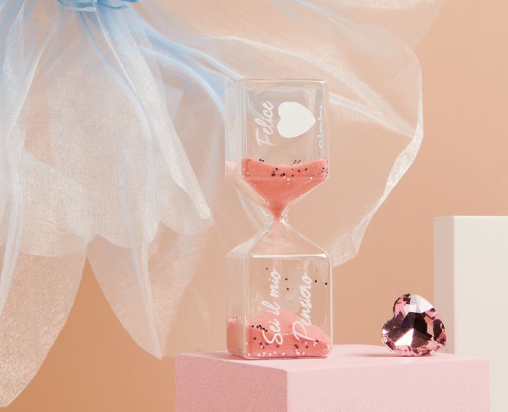 bomboniera claraluna clessidra in vetro grande rosa