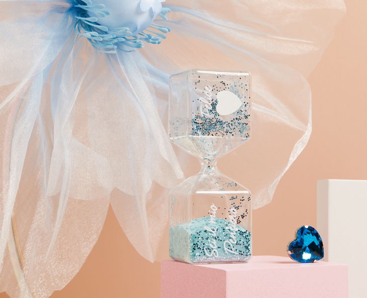 bomboniera claraluna clessidra grande azzurra in vetro