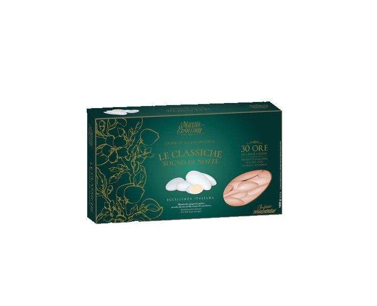 Il "Sogno di Nozze" di Maxtris è l’emblema della dolcezza e dell’eleganza, perfetto per celebrare l’amore in ogni sua forma. Ogni confetto racchiude una pregiata mandorla pelata calibro 38, avvolta da un sottilissimo strato di zucchero che dona un gusto raffinato e delicato. Ogni confezione da 1 kg contiene circa 220 - 240 confetti, è la scelta ideale per rendere indimenticabili matrimoni, anniversari nascite battesimi e confettate di classe.