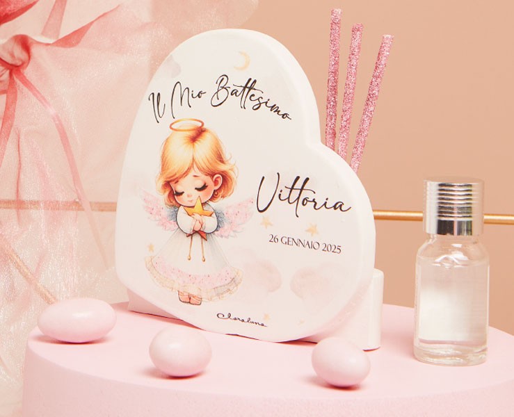 Bomboniera Claraluna diffusore a forma di cuore angioletto rosa bimba personalizzabile