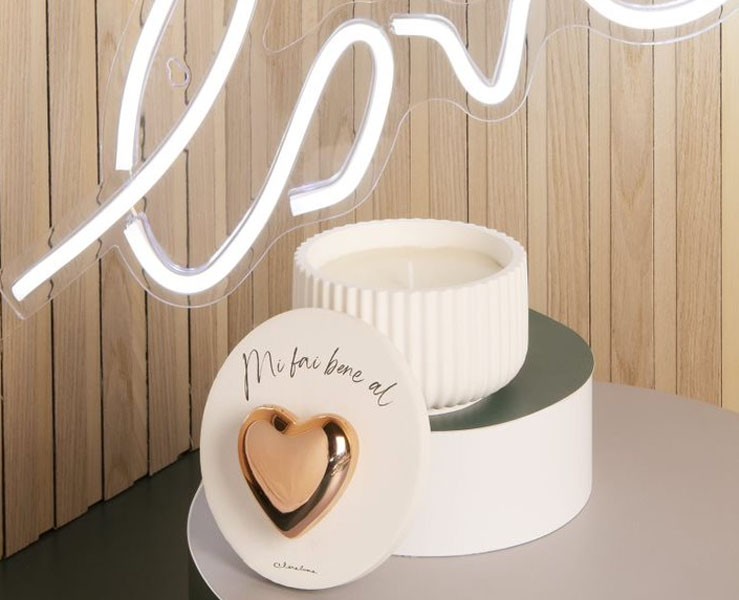 Bomboniera Matrimonio Claraluna scatola con cuore oro rosa più candela grande