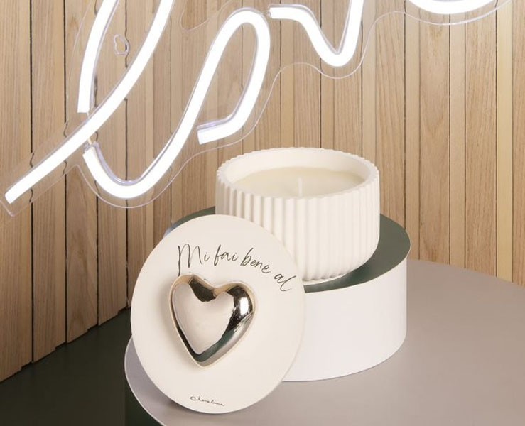 Bomboniera Matrimonio 2024 Claraluna scatola con cuore silver più candela grande