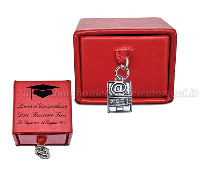 Bomboniera Laurea Bomboniera Laurea Scatolina Rossa con Ciondolo Computer