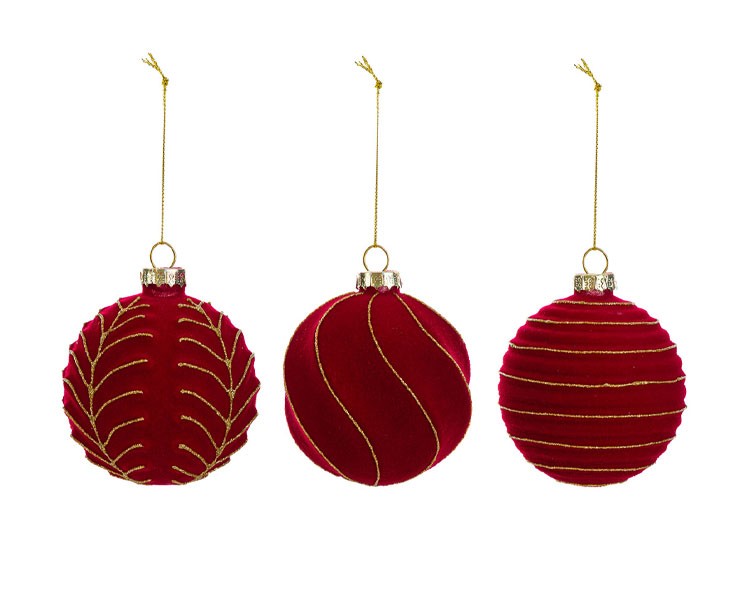 Set 3 Palline di Vetro Rosse 12 cm - Eleganza Natalizia con Dettagli Dorati