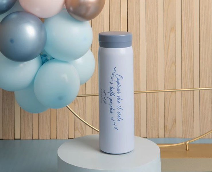 Bomboniera Battesimo, Comunione, Cresima Claraluna borraccia azzurra